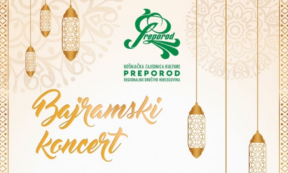 Bošnjačka zajednica kulture (BZK) “Preporod” Regionalno društvo Hercegovina sa partnerima Centrom za kulturu Mostar i Narodnim pozorištem u Mostaru, u srijedu, 21. jula u 21 sat, u Mostaru organizuju bajramski koncert kojim se obilježava najveći muslimanski praznik Kurban – bajram