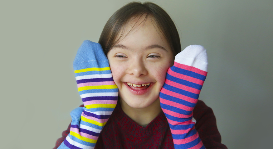 Simbol Dana sindroma Down su šarene čarape. Nošenjem šarenih čarapa pokazuje se podrška borbi osoba s Down sindromom da se integriraju u društvo.