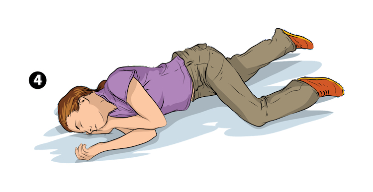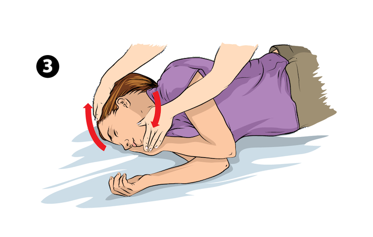 – Okrenuti osobu u napadu na bok, sa ustima okrenutim prema podu, donju vilicu potisnuti prema naprijed. Ovo omogućava slijevanje pljuvačke i onemogućava da pljuvačka ili povraćeni želučani sadržaj blokira dišni put