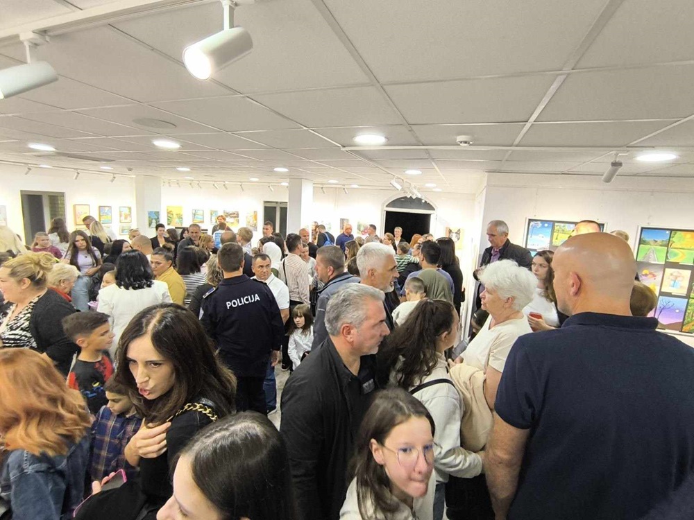 Povodom predstojeće Dječje nedjelje, večeras je u prepunoj Galeriji mostarskog Centra za kulturu otvorena izložba Škole Malih slikara.