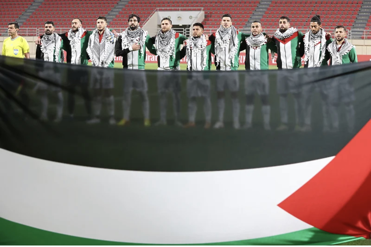 Za Palestince ovaj šal predstavlja simbol otpora i borbe za slobodu, te su iskoristilli priliku da ga prezentuju i na ovoj utakmici koja je počela minutom šutnje u znak sjećanja na stradale tokom izraelske opsade Gaze.