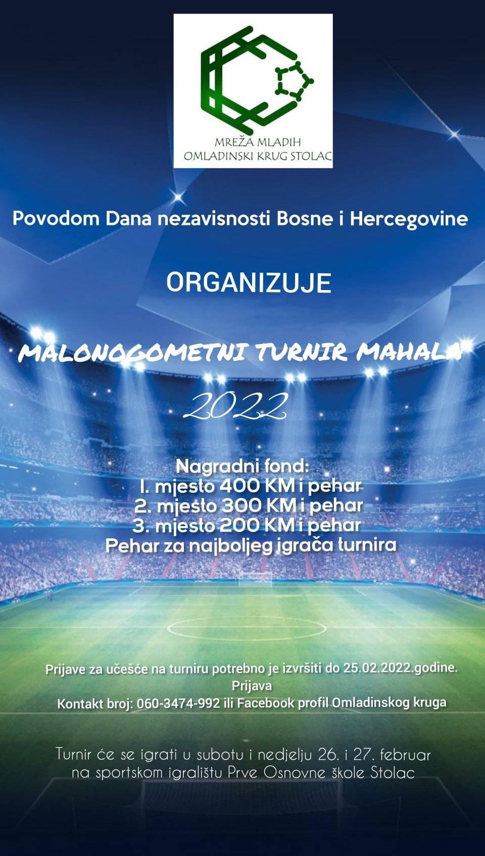Omladinski krug Stolac organizuje tradicionalni “Turnir Mahala 2022” povodom Dana nezavisnosti Bosne i Heecegovine.