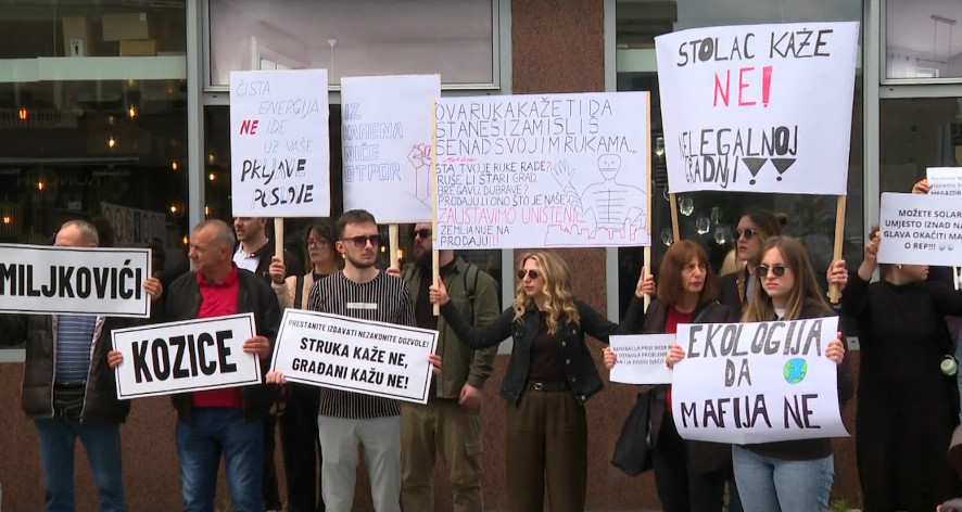 “Zaustavite zločin nad prirodom”, “Čista energija ne ide uz vase prljave poslove”, “Stolac kaže NE nelegalnoj gradnji”, “Iz kamena niče otpor”, “Ekologija DA – Mafija NE”, “Prenj kao nacionalni park, a ne industrijska zona”, “Nećemo megasolare, hoćemo megasigurnost, megazdravlje i mega sreću”, “Stop kamenolomu u Špionici”, “Koliko košta koncesija na našu budućnost?”, “Zemlja nestaje pred našim očima – Stop otimačini!”, “Prestanite izdavati nezakonite dozvole – struka kaže Ne, građani kažu Ne!” – neki su od transparenata sa ovog protestnog skupa.