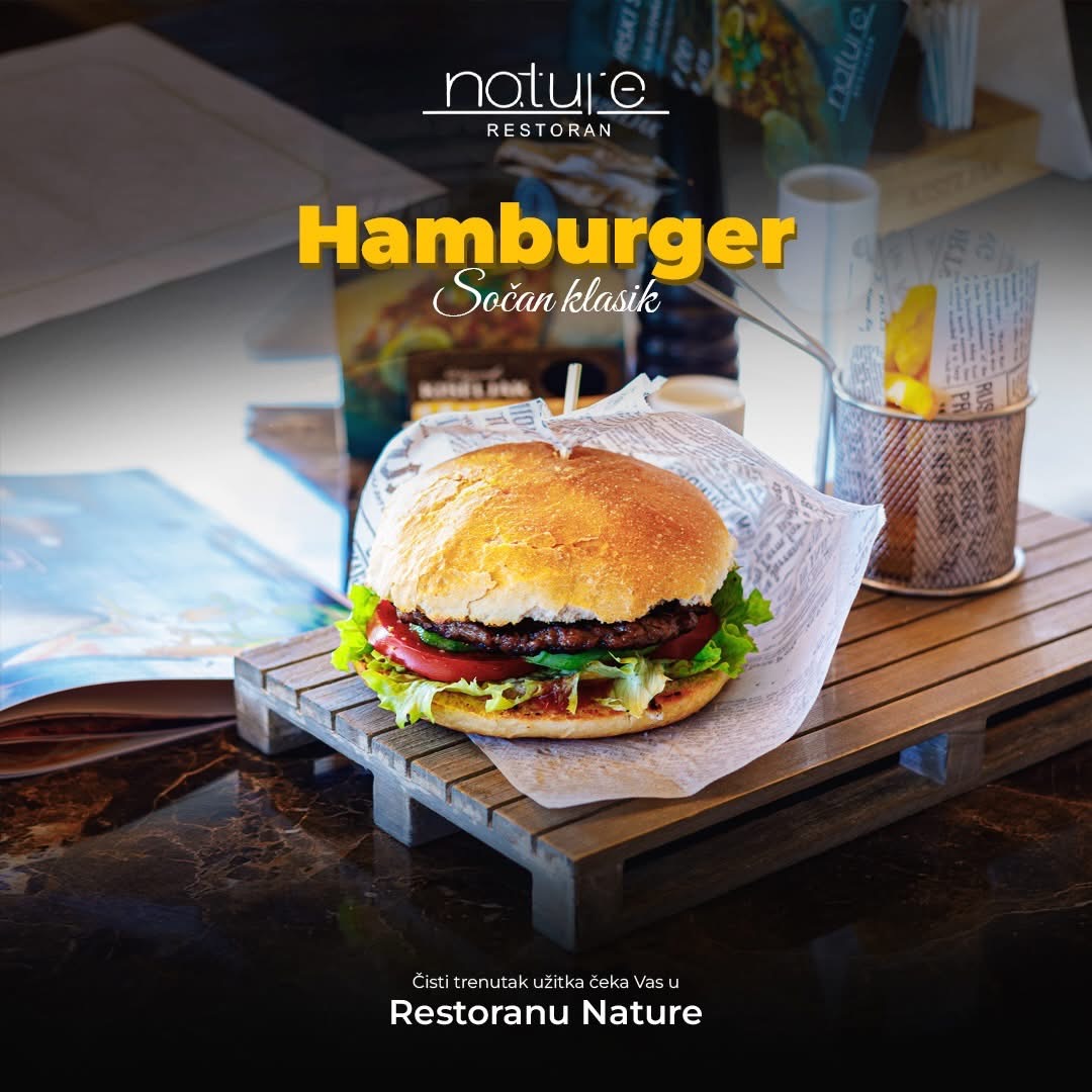 Hrskavo pecivo, pažljivo pripremljeno sočno meso i svježi dodaci čine hamburger iz Restorana Nature pravim primjerom jednostavne, ali vrhunske gastronomije. Svaki zalogaj potvrđuje zašto je hamburger bezvremenski klasik savremene gastronomije – jednostavan, ali uvijek siguran izbor.