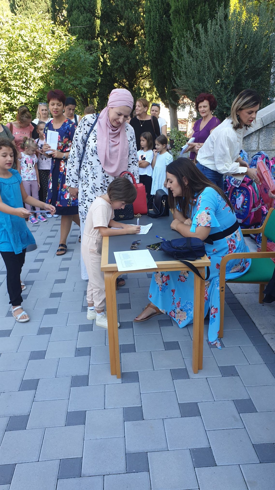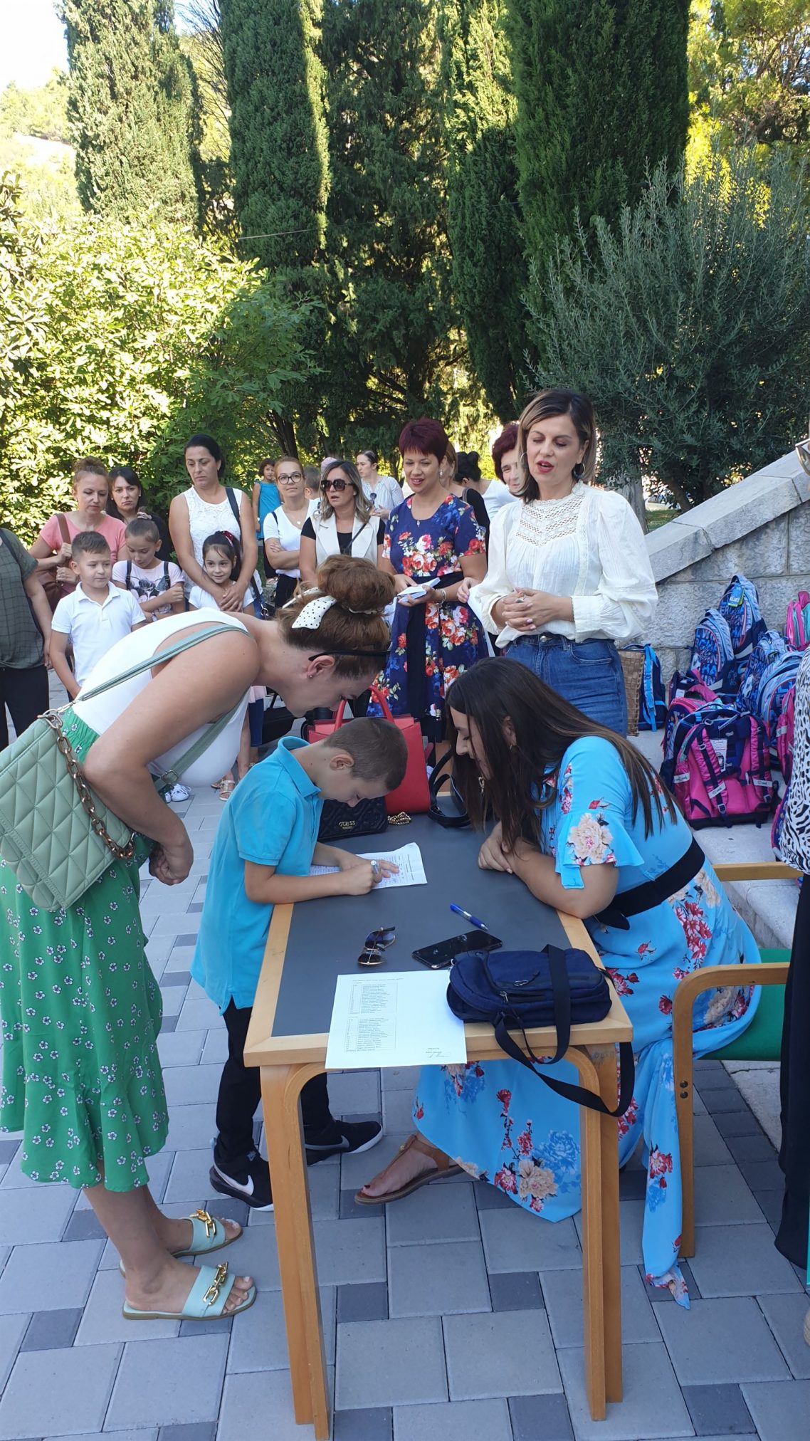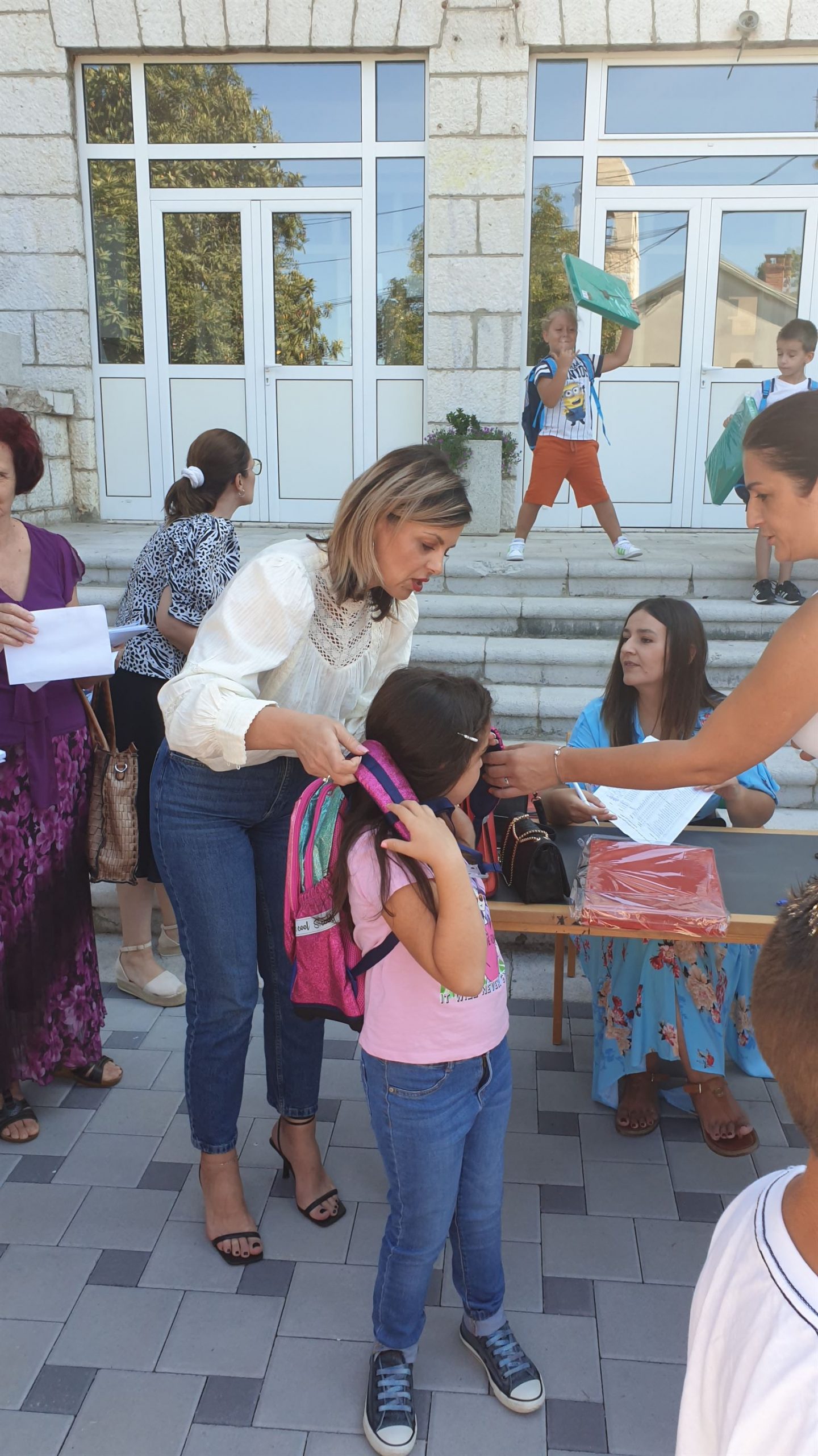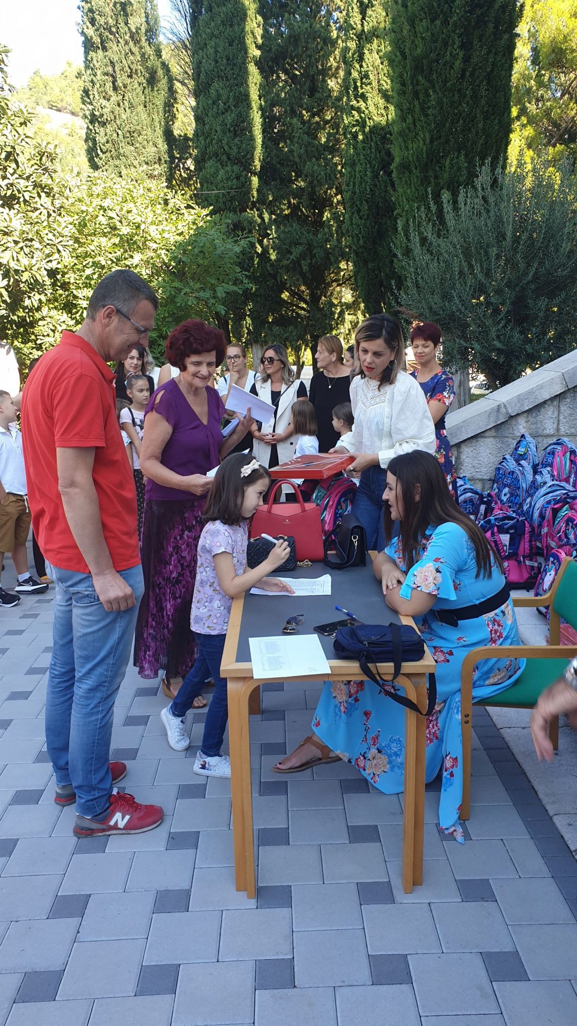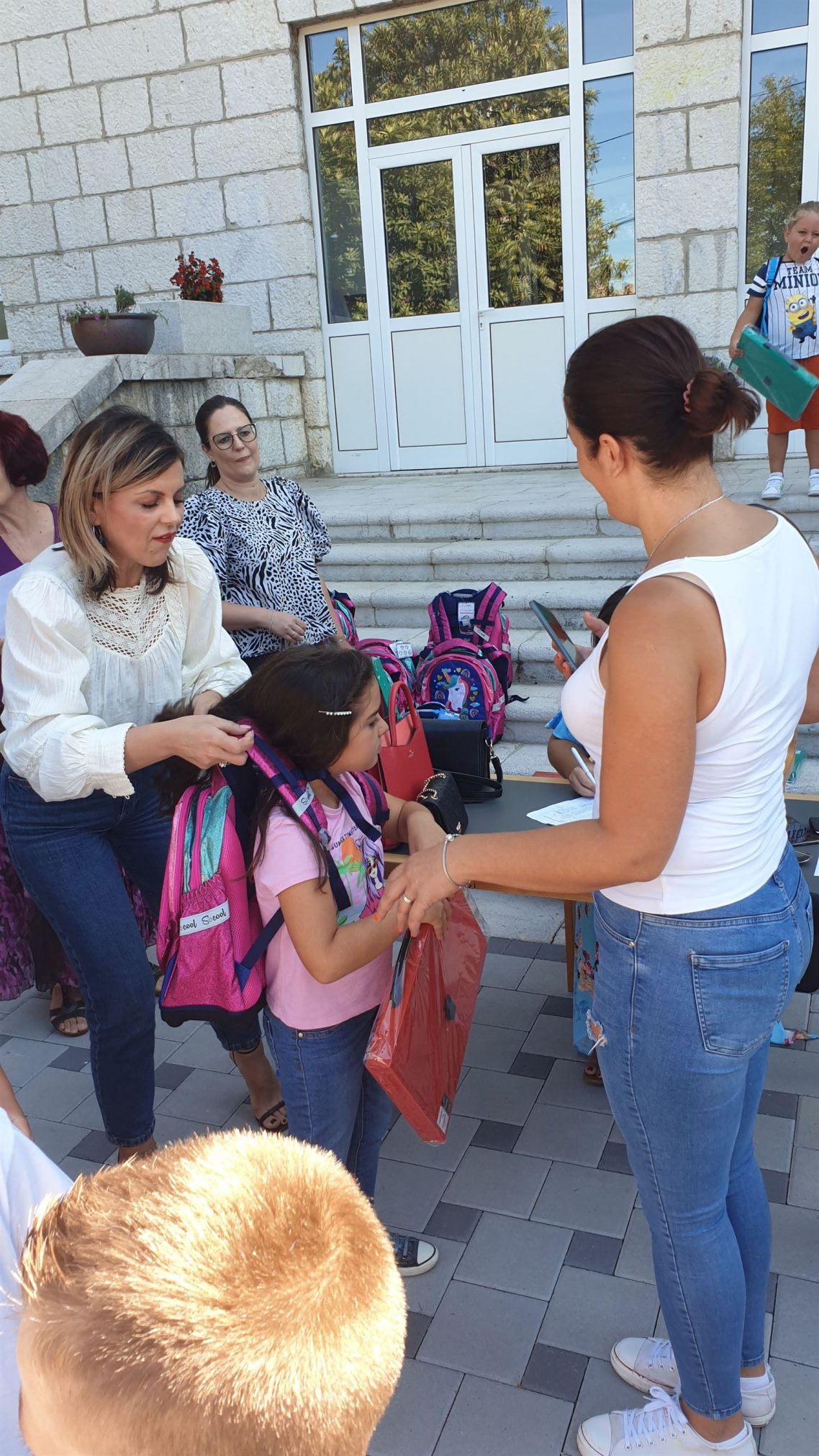 U školskom parku, u skladu sa svojim programskim ciljevima, šesti put zaredom, prigodnim poklonima obradovali smo učenike i zaželjeli im uspješan početak školovanja.