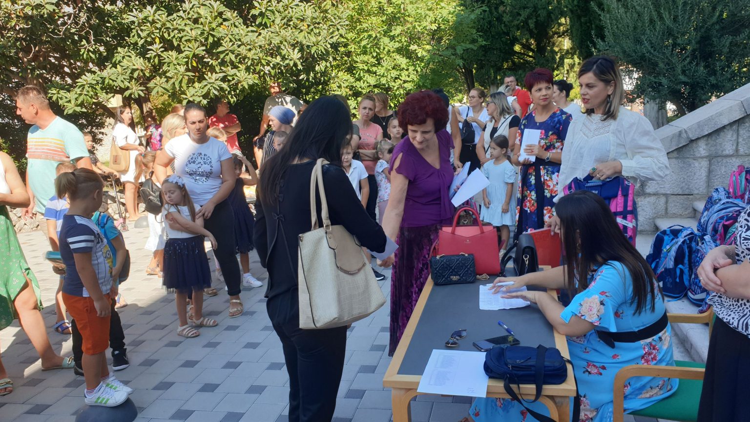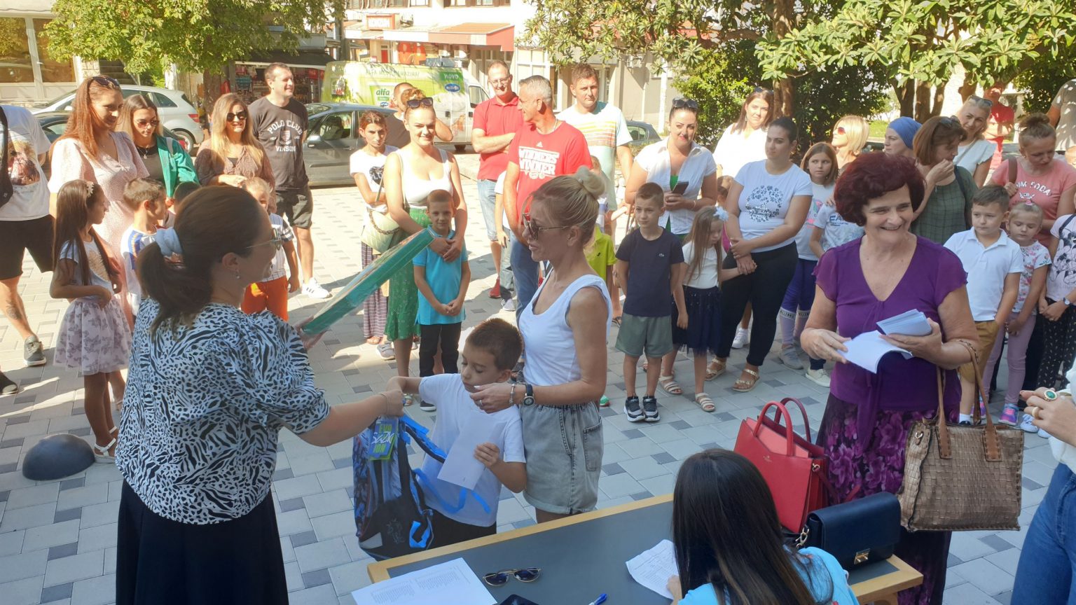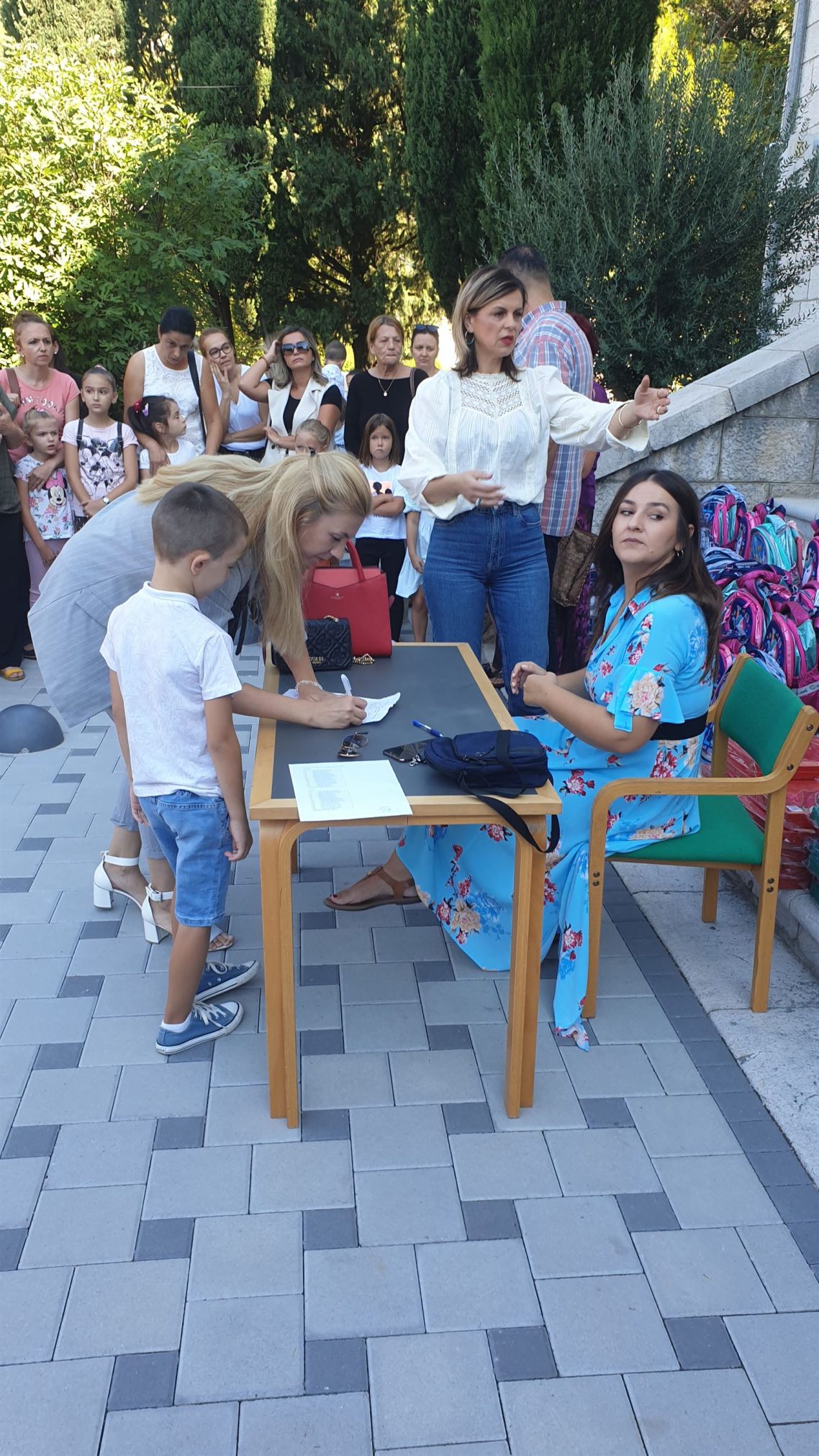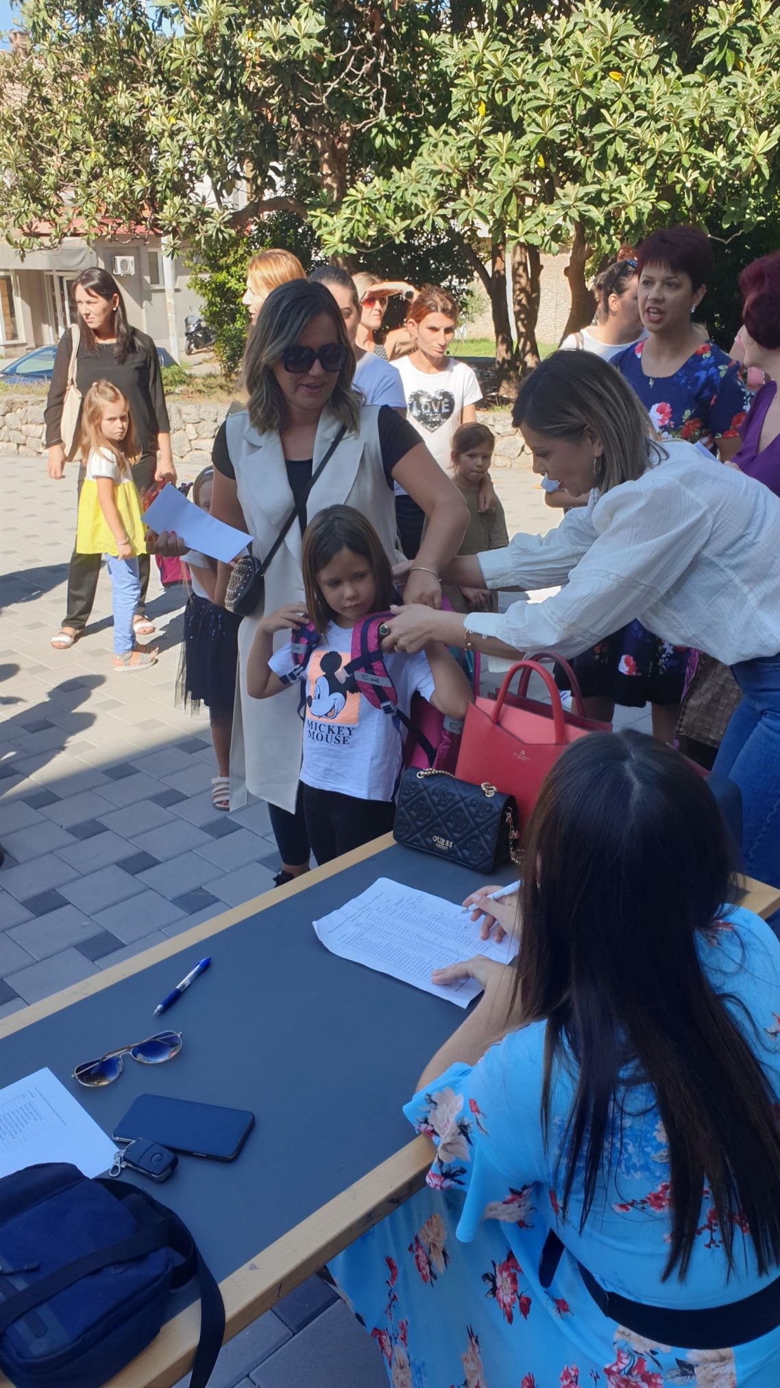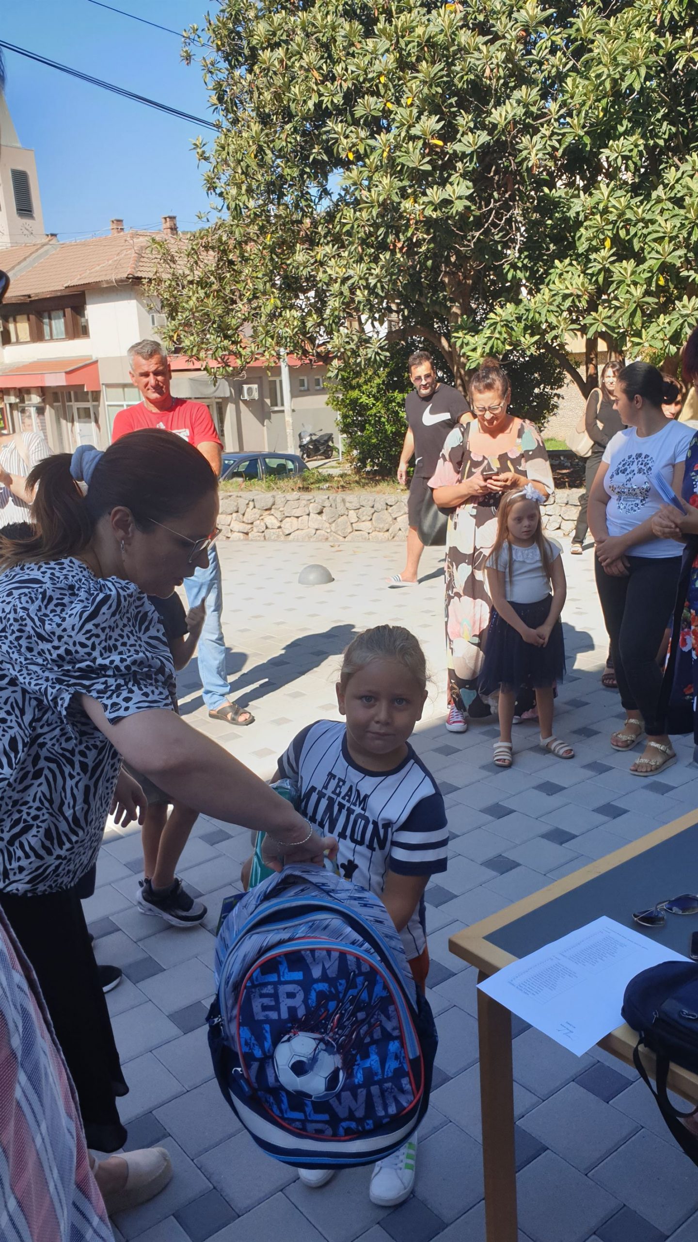 U školskom parku, u skladu sa svojim programskim ciljevima, šesti put zaredom, prigodnim poklonima obradovali smo učenike i zaželjeli im uspješan početak školovanja.