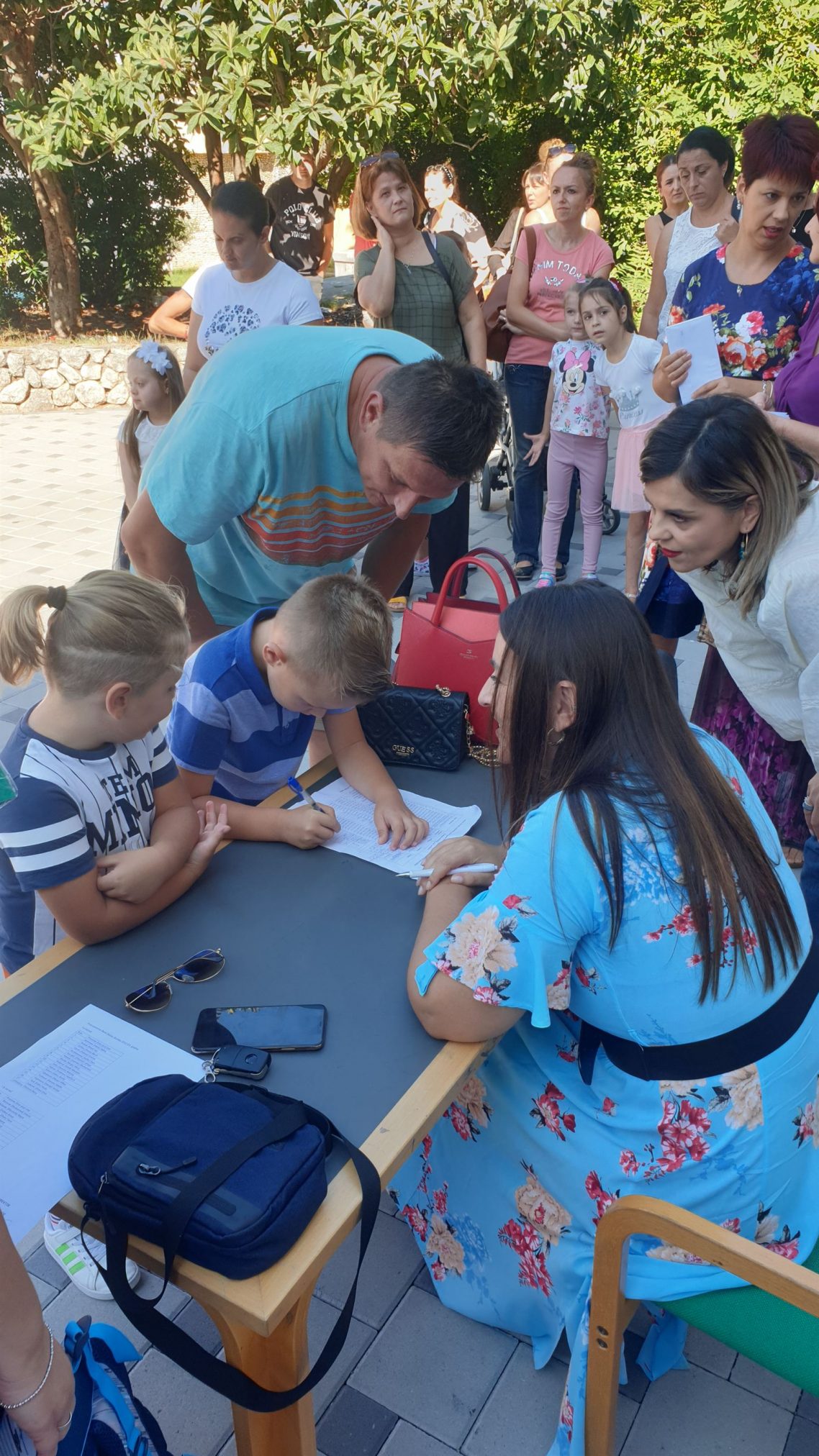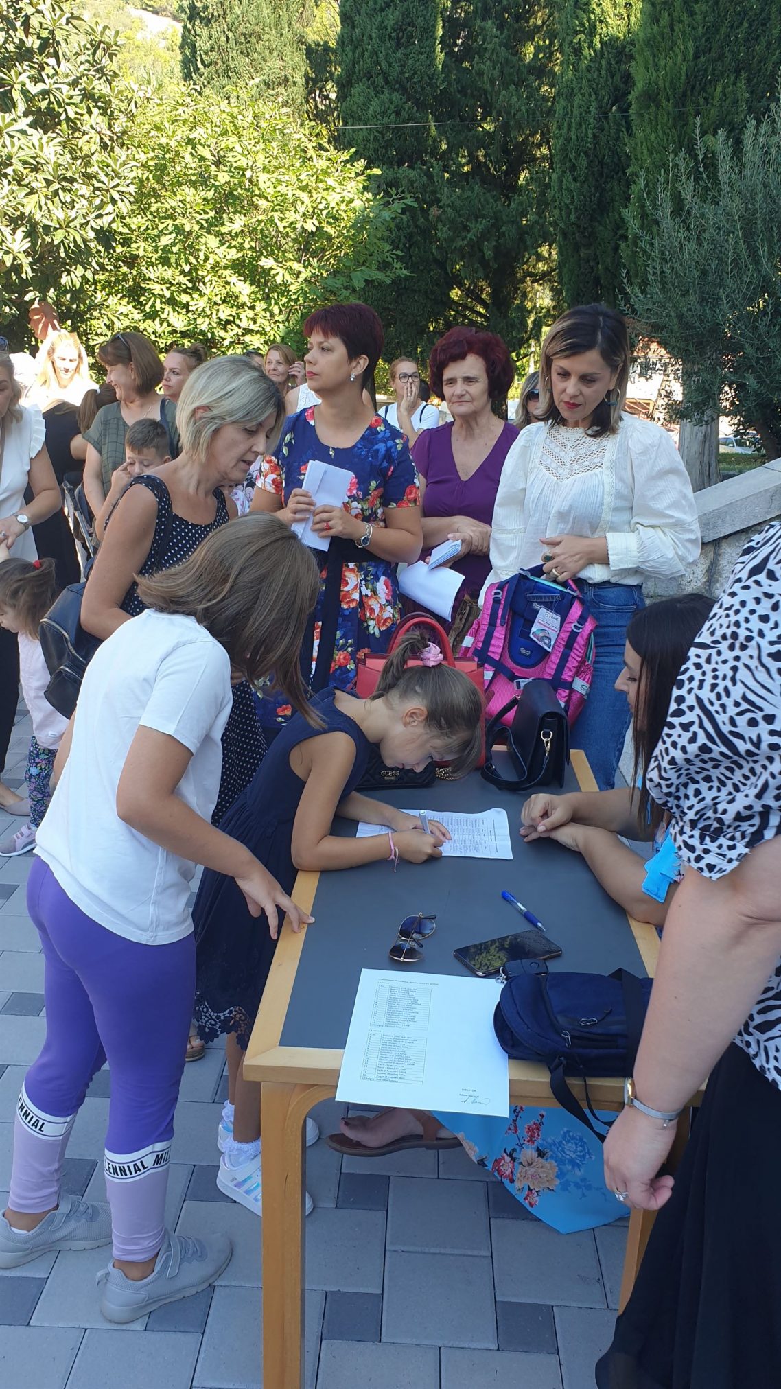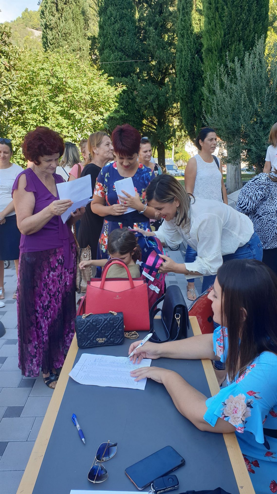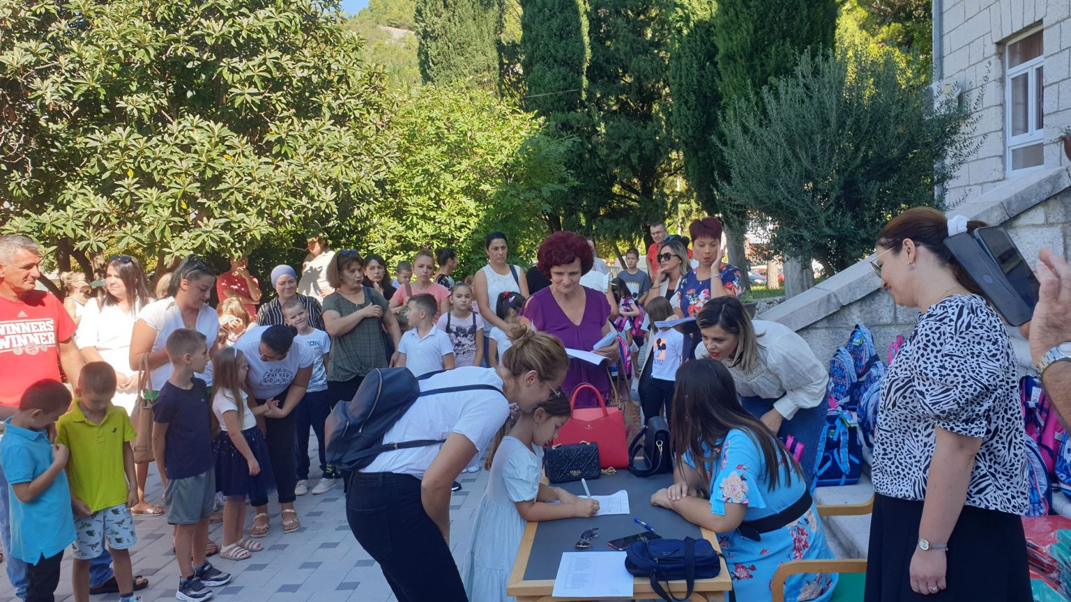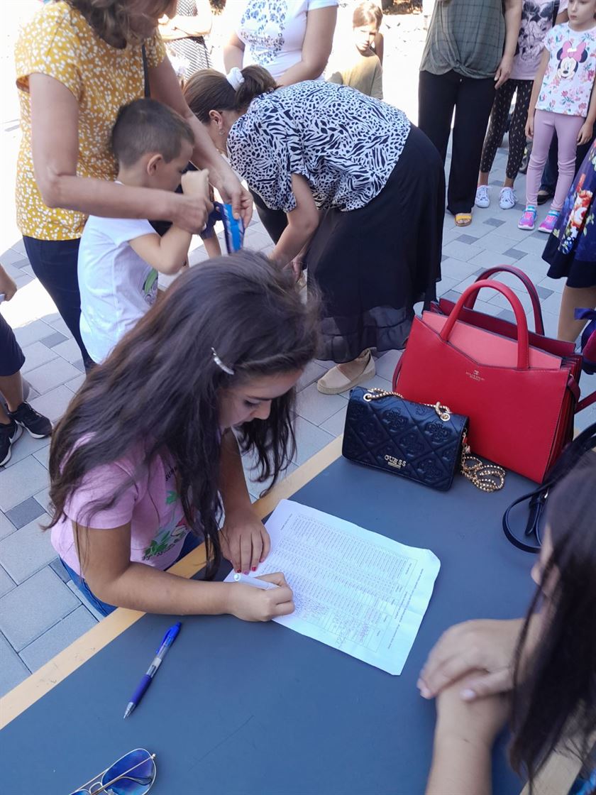U školskom parku, u skladu sa svojim programskim ciljevima, šesti put zaredom, prigodnim poklonima obradovali smo učenike i zaželjeli im uspješan početak školovanja.