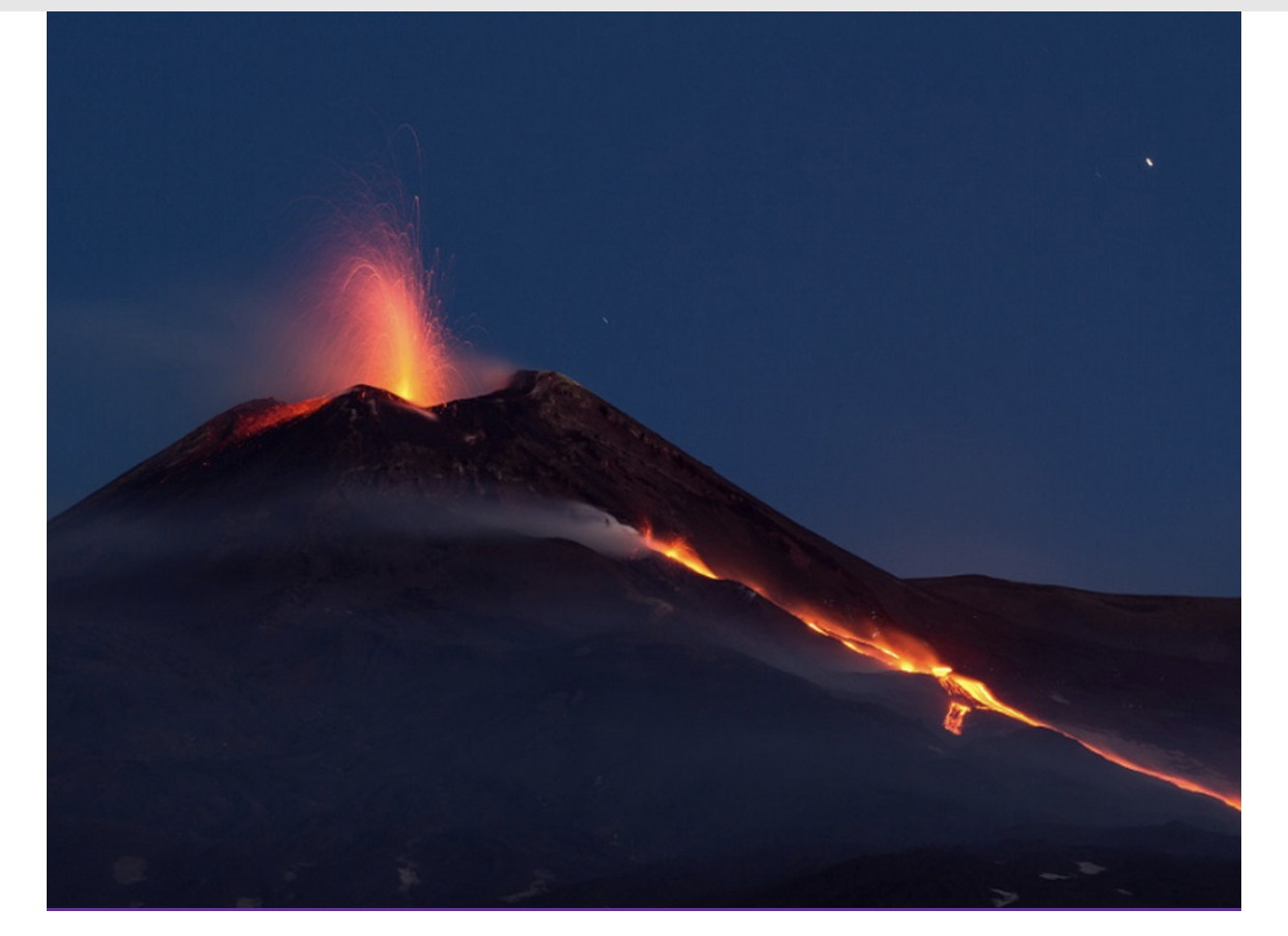Izdaleka su se mogle vidjeti sjajna lava i krhotine koje su izbačene u tamu, a zatim su polako tekle niz planinu. Vulkan je posebno aktivan kod jugoistočnog kratera. Etna je najveći aktivni vulkan u Evropi, visok oko 3300 metara.